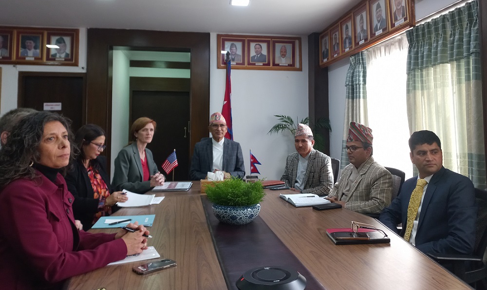 काठमाडौं । अन्तर्राष्ट्रिय विकासका लागि अमेरिकी सहयोग नियोग (युएसएआईडी)का प्रशासक सामन्था पावरले उपप्रधानमन्त्री तथा अर्थमन्त्री विष्णुप्रसाद पौडेलेसँग शिष्टाचार भेटघाट गरेकी छन् । गत वर्ष दुई देशबीचको कुटनीतिक सम्बन्धको ७५औं वर्षगाँठ मनाइएको स्मरण गर्दै उपप्रधानमन्त्री तथा अर्थमन्त्री पौडेलले द्विपक्षीय सम्बन्धलाई अझ सुमधुर तुल्याउने प्रतिबद्धता व्यक्त गरे । नेपालले सन् १९५१ मा प्वाइन्ट फोर प्रोग्रममा हस्ताक्षर गरेपछि पहिलो पटक…