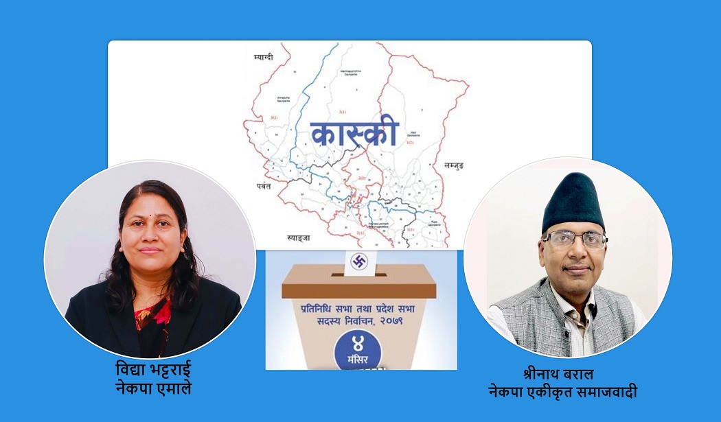 पोखरा । आसन्न प्रतिनिधि सभा तथा प्रदेश सभाको निर्वाचनमा कास्की निर्वाचन क्षेत्र नं २ मा कसले बाजी मार्ने हो भन्ने विषय बढी चर्चामा छ । यसअघि २०७४ सालको निर्वाचनमा नेकपा एमाले र माओवादीसहितको बाम गठबन्धनका साझा उम्मेदवार रवीन्द्र अधिकारी विजयी भएका यस क्षेत्रमा उनको निधनपछि भएको उपनिर्वाचनमा उनकी पत्नी विद्या भट्टराई विजयी भएकी थिइन् ।…