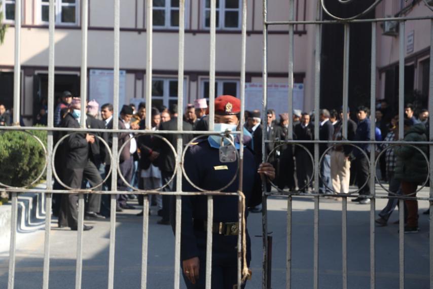 काठमाडौं । निलम्बित प्रधानन्यायाधीश चोलेन्द्र शमशेर जबराविरुद्धको महाभियोगको प्रस्ताव निष्प्रभावी भएको संघीय संसद सचिवालयले जबरासहितलाई पत्र दिएपछि अहिले सर्वाेच्च अदालतको गेटमा कानुन व्यवसायी धर्नामा बसेका छन् । नेपाल बार एसोसिएसनकै नेतृत्वमा कानुन व्यवसायी सर्वाेच्च अदालतमा धर्नामा बसेका हुन् । कानुन व्यवसायीको प्रदर्शनपछि गत १ फागुनमा दर्ता भएको जबराविरुद्धको महाअभियोग प्रस्ताव निष्प्रभावी भएको संघीय संसद सचिवालयले बुधबार जबरासहित…