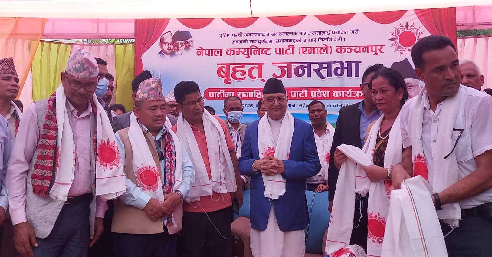 कञ्चनपुर । नेकपा एमालेका अध्यक्ष केपी शर्मा ओलीले सत्तारुढ गठबन्धनमा आबद्ध दल राष्ट्रियताको ख्यालै नगरी सत्ता जोगाउन विदेशी सामु लम्पसार परेको आरोप लगाएका छन् । सत्ता जोगाउन प्रधानमन्त्री शेरबहादुर देउवा भारतको सरणमा पुगेका र प्रधानमन्त्री बनाइदेऊ भन्दै माओवादी अध्यक्ष प्रचण्ड पनि भारतसँग खुसुखुसु गर्न थालेका उनले बताए । ‘सत्तारुढ दल देशको लागि नभई व्यक्तिगत स्वार्थका…