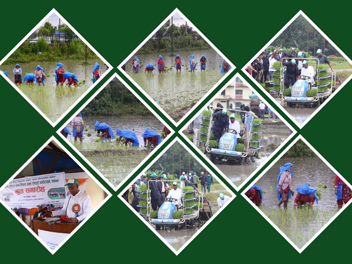काठमाडौं । कृषि तथा पशुपंक्षी विकास मन्त्री महिन्द्र राय यादवले मेसिन चलाएर धान रोपेका छन् । राष्ट्रिय धान दिवसको अवसरमा बुधबार राष्ट्रिय बाली विज्ञान अनुसन्धान केन्द्र खुमलटार फार्म परिसरमा आयोजित १९औँ राष्ट्रिय धान दिवस तथा रोपाइँ महोत्सव २०७९ कार्यक्रममा मन्त्री यादवले मेसिन चलाएर धान रोपेका हुन् । सो क्रममा मन्त्रालय, अनुसन्धान केन्द्रकासहित पदाधिकारीहरू सहभागी थिए…