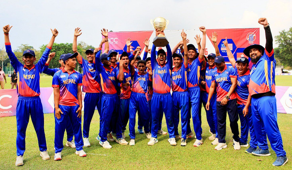 काठमाडौं । नेपाल क्रिकेट संघ (क्यान) ले मलेसियामा भएको एसीसी यू-१६ इस्ट जोन कप क्रिकेटको उपाधि जितेको नेपाली टोलीलाई पुरस्कार सम्मान गर्ने भएको छ । क्यानले टोलीका खेलाडी र अफिसियलहरुलाई जनही ५० हजारसहित सम्मान गर्ने प्रवक्ता छुम्बी लामाले जानकारी दिए । जुन २० देखि जुलाई ५ सम्म मलेसियामा भएको प्रतियोगिताको फाइनलमा सिंगापुरलाई हराउँदै नेपालले उपाधि…