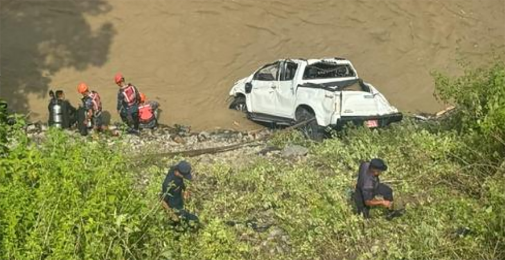 काठमाडौँ । सिन्धुलीमा भएको दुर्घटनामा सुनकोसी नदीमा खसेको गाडी निकालिएको छ । सशस्त्र प्रहरी बल नेपाल विपद् व्यवस्थापन बेश खुर्कोटको गोताखोर टोलीले गाडीलाई नदी किनारमा निकालेको छ । शनिबार साँझ करिब साढे ५: ३० बजे हाइलक्स गाडी सुनकोसीमा खस्दा ३ जना बेपत्ता भएका थिए । भक्तपुरको सूर्यविनायक नगरपालिका ४ बाट हलेसी तीर्थयात्रा गएर फर्किने क्रममा…