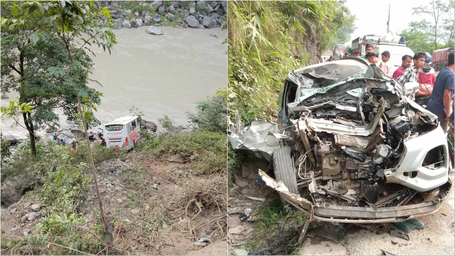 मलेखु (धादिङ) । पृथ्वी राजमार्गअन्तर्गत चितवनको फिस्लिङ बजार नजिक आज बिहान दुई वटा सवारीसाधन एकापसमा ठोक्किँदा २० जना घाइते भएका छन् भने पाँच जनाको अवस्था गम्भीर छ । नेपालगञ्जबाट काठमाडौँतर्फ गइरहेको भे१ख ४०६० नम्बरको यात्रीबस त्रिशूली नदी किनारमा खसेको छ । काठमाडौँबाट मुग्लिनतर्फ गइरहेको बागमती प्रदेश ०२–०३९च ३७२० नम्बरको कार एकापसमा ठोक्किँदा बस नदी किनारमा…