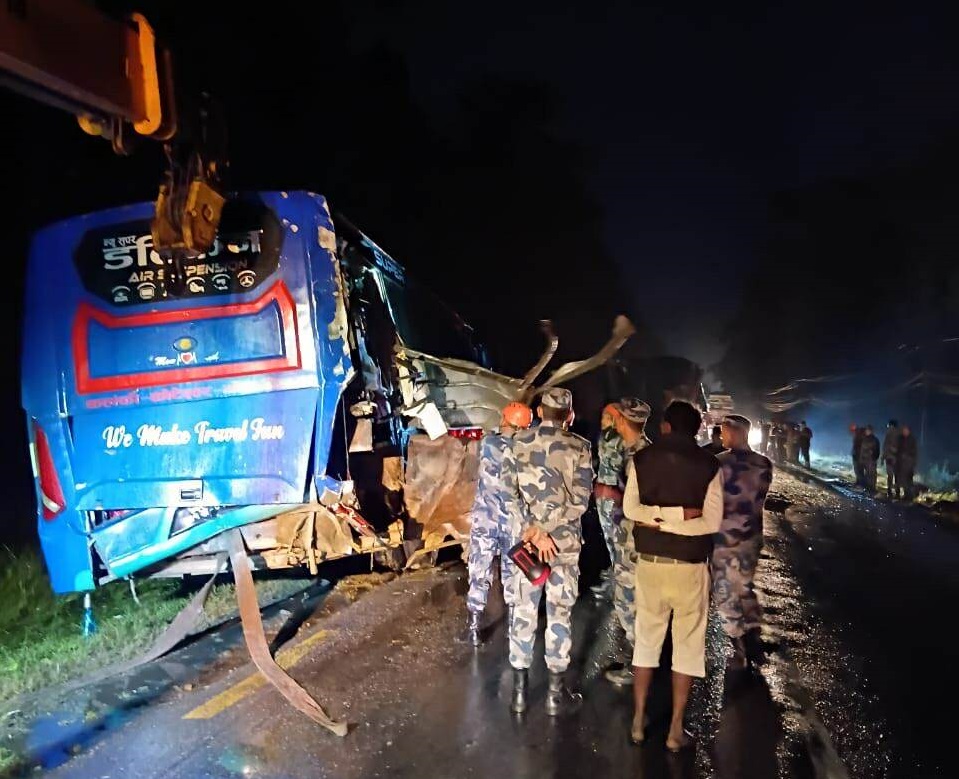 चितवन । गौरबाट काठमाडौँतर्फ गइरहेको बस भरतपुर महानगरपालिका–९ टिकौली जङ्गलमा आज बिहान दुर्घटना हुँदा ३३ जना घाइते भएका छन् । भरतपुरस्थित सशस्त्र प्रहरी बल कार्यालयका सहप्रवक्ता शैलेन्द्र थापाका अनुसार घाइतेहरुको तत्काल उद्धार गरी चितवन मेडिकल कलेज, नेशनल सिटी अस्पताल र भरतपुर अस्पताल पु-याइएको छ । घाइतेमध्ये १५ जनाको चितवन मेडिकल कलेज, १३ जनाको नेशनल सिटी…