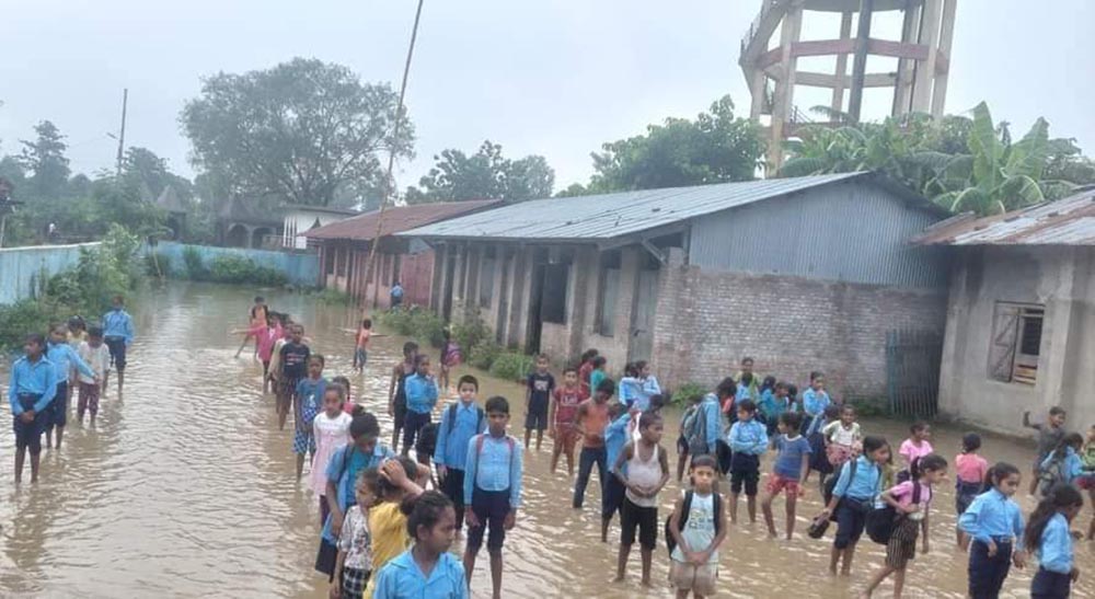 रौतहट । रौतहटस्थित एउटा सामुदायिक विद्यालयको चौतर्फी पानी जमेपछि पठनपाठन अवरुद्ध भएको छ । जिल्लाको पूर्विभेग दुर्गा भगवती गाउँपालिका स्थित एक सामुदायिक विद्यालयको कक्षाकोठा भित्र वर्षातको पानी जमेपछि पठनपाठन अवरुद्ध भएको हो । कक्षाकोठासंगै बर्षाको पानी विद्यालयको प्राङ्गणमा समेत जमेपछि अध्ययनरत बालबालिका लाई कठिनाई भएको छ। दुर्गा भगवती १ स्थित जनता प्राथमिक विद्यालयको कक्षाकोठा र…