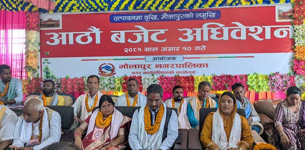 रौतहट । रौतहटको मौलापुर नगरपालिकाको आठौं बजेट अधिवेशन सोमवार एक समारोहका बिच सम्पन्न भएको छ । आमजनता पार्टीका अध्यक्ष संघीय सांसद प्रभु साहको प्रमुख आतिथ्यमा सर्वसम्मत ढंगले सम्पन्न नगरसभाले विभिन्न लोकप्रिय कार्यक्रम सहित कुल ३९ करोड़को बजेट घोषणा गरिएको छ । कार्यक्रममा प्रमुख अतिथि साहले मौलापुरले लिएको 'शुन्य कर नीति' को सर्वत्र सराहना भईरहेको बताएका…