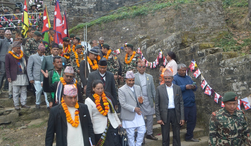 गाेरखा । नेपाल एकीकरणका क्रममा प्रयोग भएको पदमार्गको प्रचारप्रसारका लागि नेपाली सेनाको एक टोली आज गोरखा–काठमाडौं पदयात्रामा निस्किएको छ । गोरखाबाट शुरू भएको एकीकरण पदयात्रा धादिङ, नुवाकोट हुँदै यही पुस २७ गते पृथ्वीजयन्ती तथा राष्ट्रिय एकता दिवसको अवसरमा काठमाडौंकाे हनुमान ढोका दरबारमा आयोजना हुने विशेष समारोहमा सहभागी भएर समापन हुने रिपुर्मदन गण गोरखाका गणपति प्रमुख…