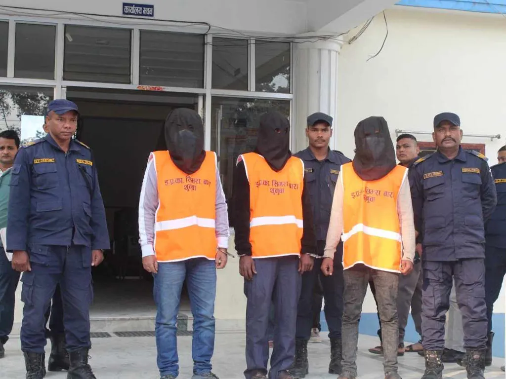 काठमाडौँ । बाराको जितपुर सिमरा उपमहानगरपालिकामा नेपाल प्रहरीको कार्यालय सहयोगी राजकुमार रुम्बाको हत्यामा संलग्न रहेको आरोपमा राष्ट्रिय अनुसन्धानका अधिकृतसहित तीन जना पक्राउ परेका छन्। पक्राउ परेकाहरूलाई आइतबार बारा प्रहरीले पत्रकार सम्मेलन गरी सार्वजनिक गरेको छ। पक्राउ पर्नेमा महोत्तरी जलेश्वर नगरपालिका-३ घर भई राष्ट्रिय अनुसन्धान कार्यालय बारा दरबन्दी भई विमानस्थल कार्यालय सिमरामा कार्यरत राष्ट्रिय अनुसन्धान विभागका…